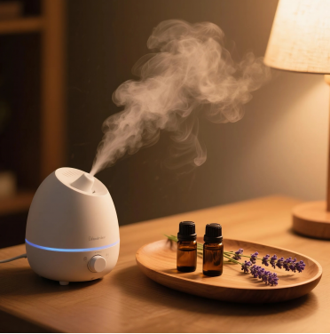 把精油滴入香熏機中香熏環(huán)境。